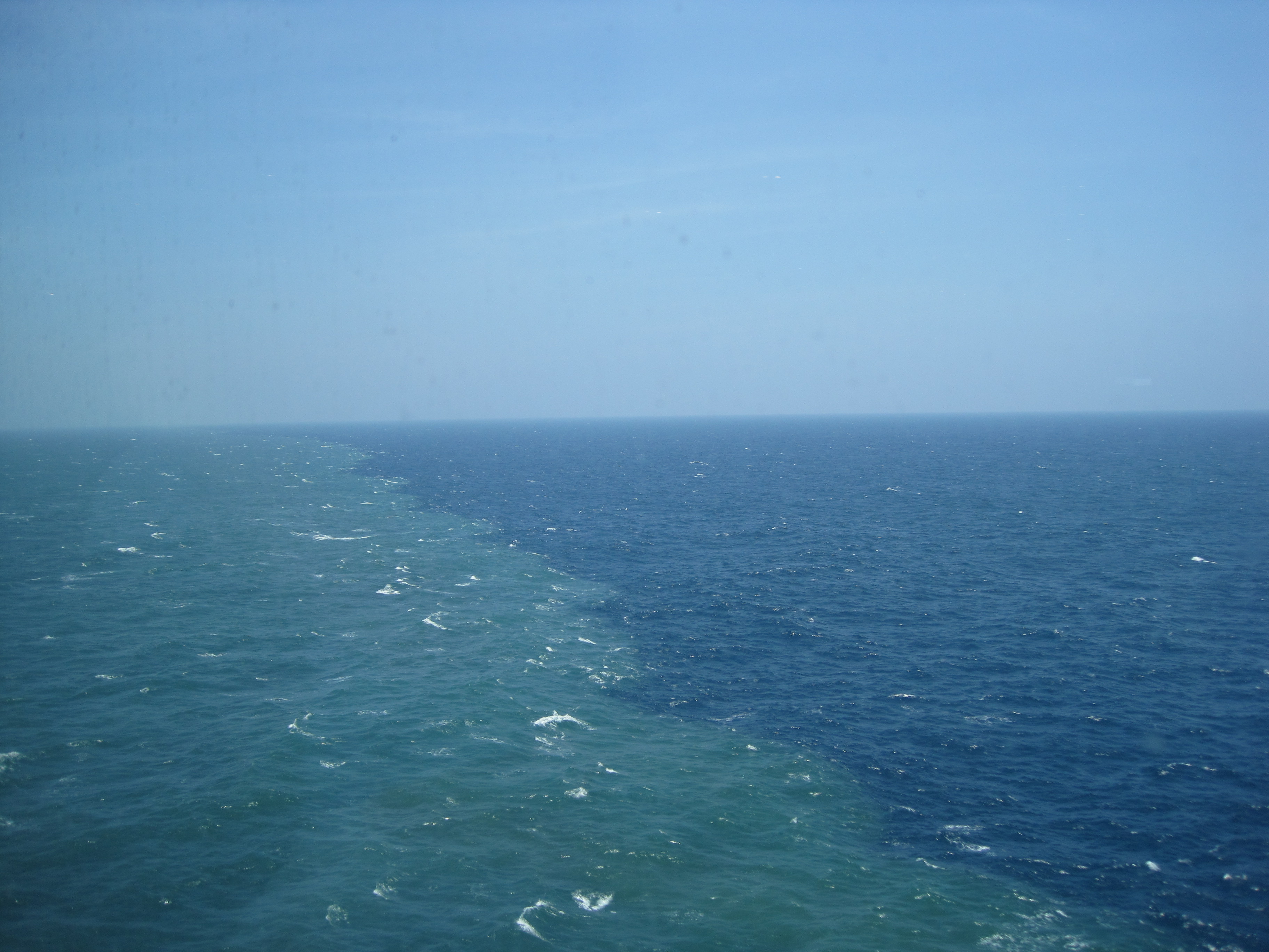 We have just crossed over a line in the water. I kid you not. A virtually straight line in the water. I’ll attach a photo because otherwise you wouldn’t believe me.