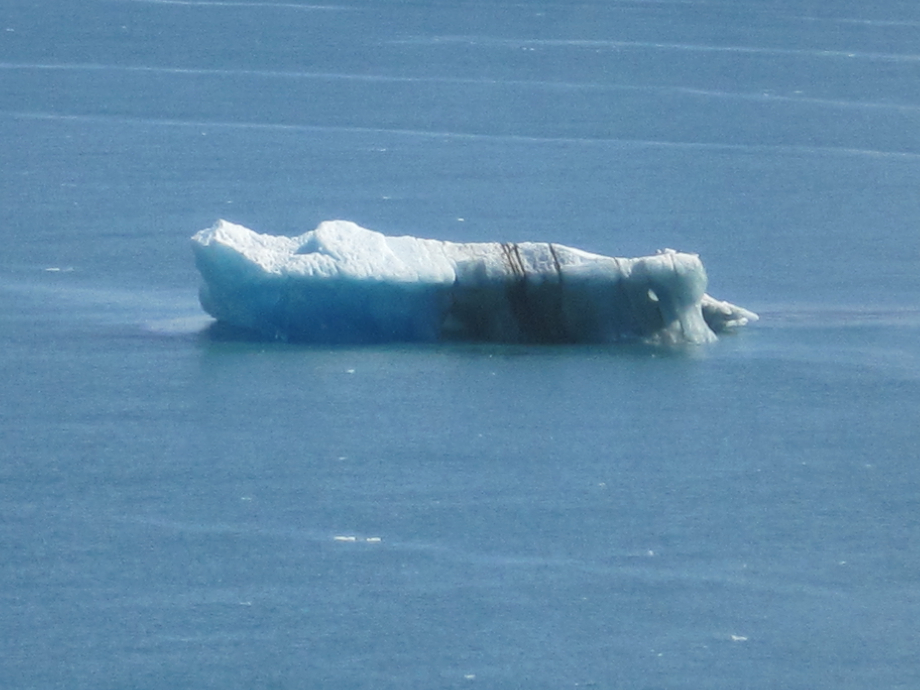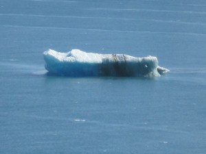 Glacier ice really is a startlingly bright shade of light blue, almost turquoise at times, but, boy, is it dirty. As it gouges its way down the mountainsides, it picks up everything in its path, so that, by the time it hits the water and starts to float away, it is often quite black and grubby in places. Mum said one piece looked like it had been run over and had tyre marks on it! See? You never thought icebergs would be black, did you?! Although, strictly speaking, these are ‘bergies’, not ‘bergs’. They’re too small. Talking of jargon, ‘growlers’ drop lots of small bits, ‘calving’ is for a large chunk in one go.