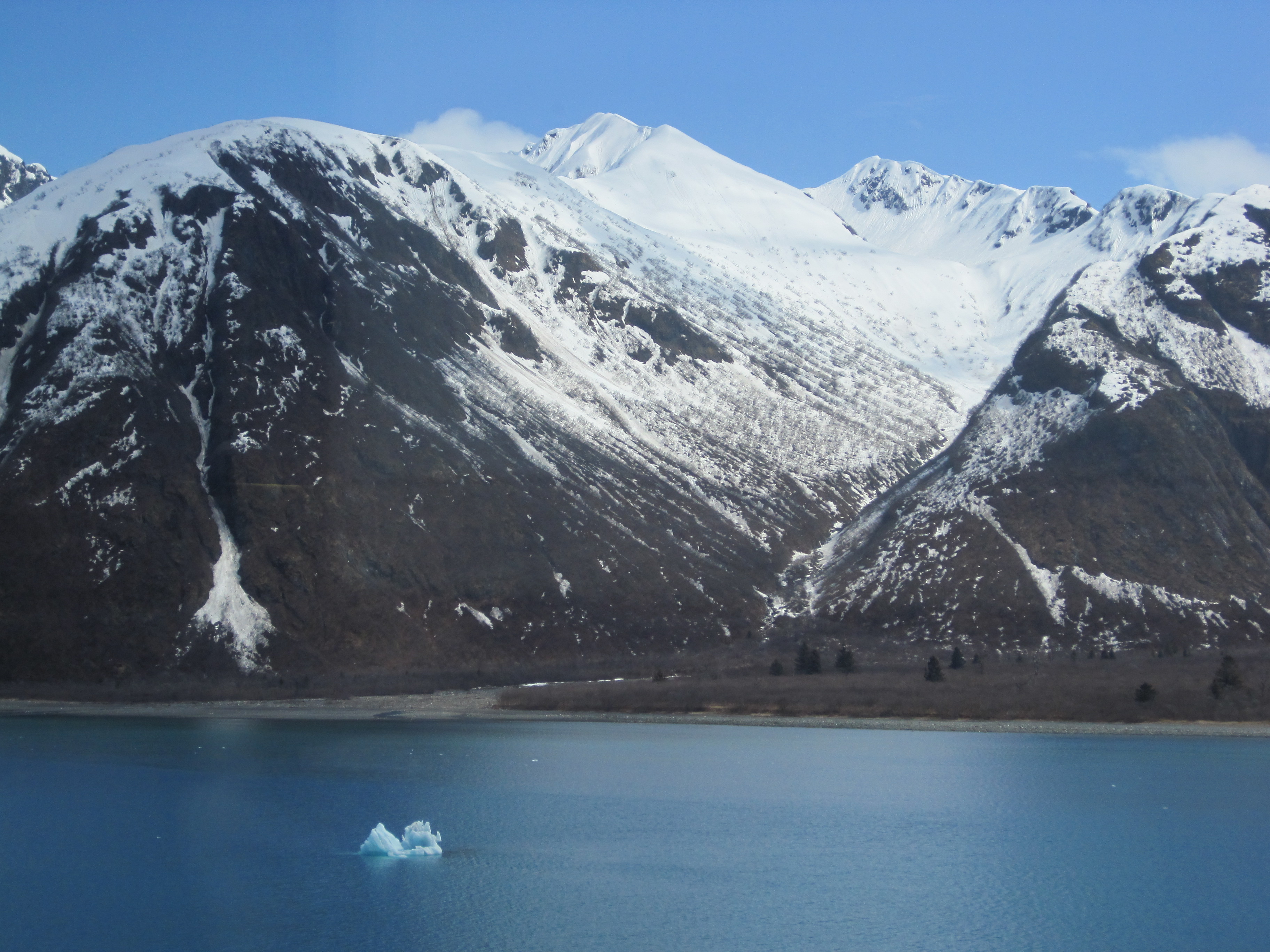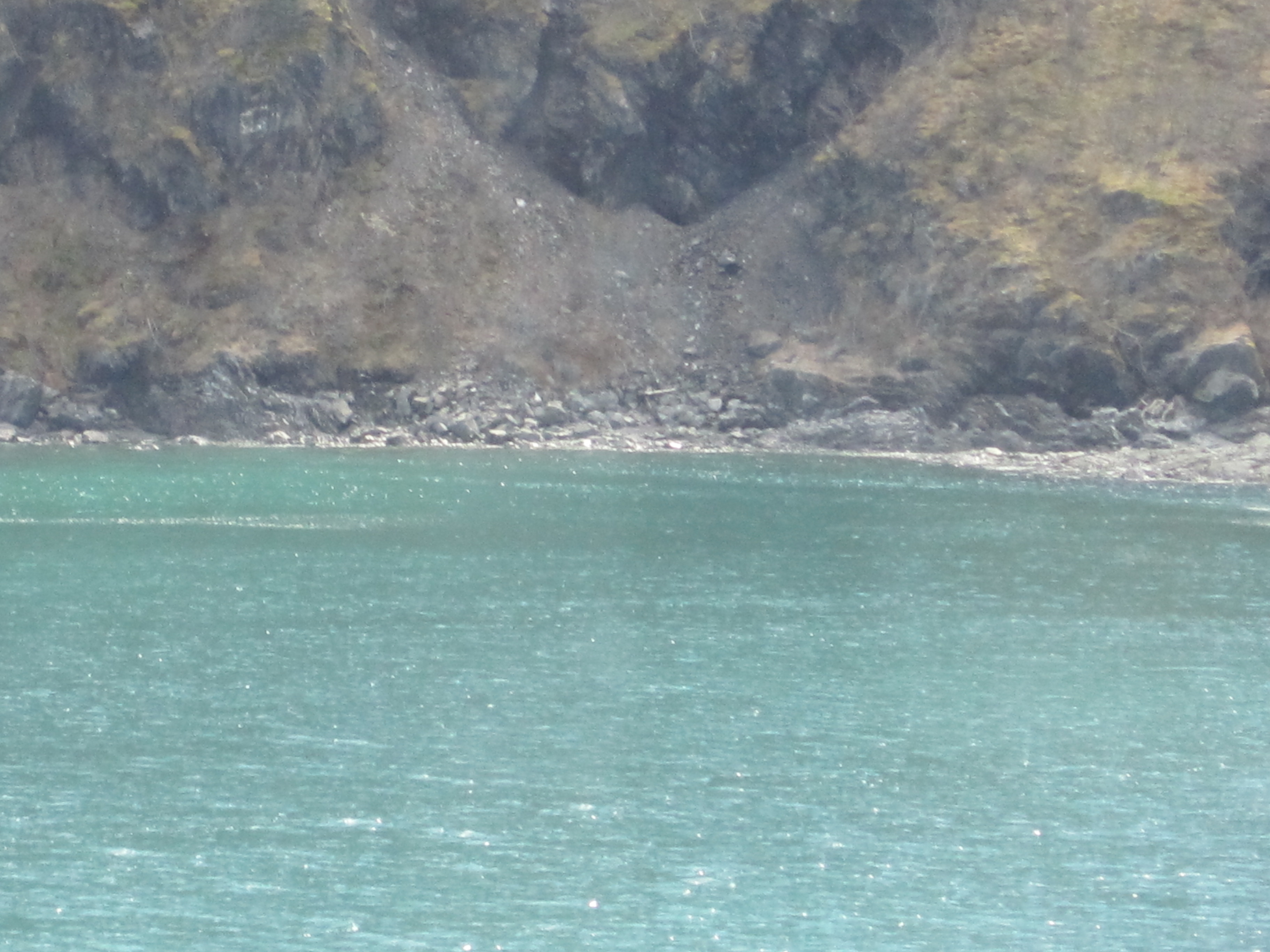 The sun is shining full throttle now, but it is still bitingly cold out. Not even I could last more than about a half hour without a coat. It’s THAT cold. There is still virtually no wind, however, which is nice. The sun sets here at about 11pm and rises at about 4.30am, so if I didn’t have an inside cabin, I’d be seriously sleep-deprived by now! Marge was awake at 5am yesterday. She got to see a pod of orcas, but 5am? Really? No, thank you! It does mean that the views are constant. It’s hard to have a nap or go to a talk or even go to the loo, because you might miss something even more breathtaking than the last thing. Thank heavens for the occasional patch of really boring conifer forest, otherwise I’d have wet myself by now! Even in the cabin, I have the television tuned to the mastcam, so that I don’t miss one moment of this amazing landscape, crafted by sheer brute force and so dumbfounding to gaze at. I wish I had the words to describe it to you better. Alaska is making me feel very inarticulate!