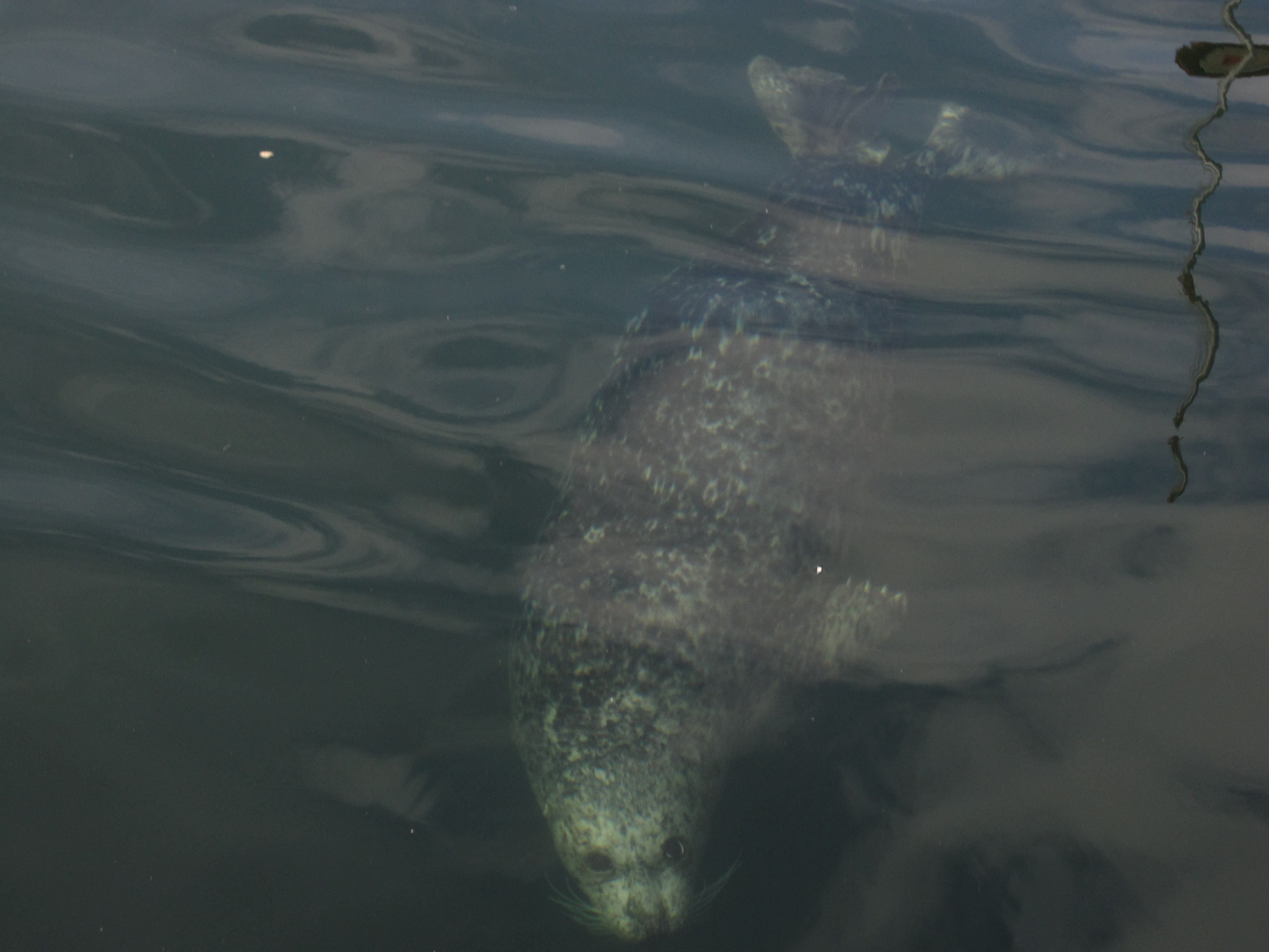 We couldn’t find a restaurant for dinner, so we grabbed a cab to Fisherman’s Wharf, which we were under the impression had eateries. Turns out to be a houseboat village with a couple of cafes and some visiting seals, one of whom came to say hello to us. So I took lots of pictures of the seal.