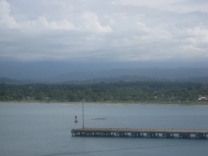 Puerto Limon is only a little port, I can see the other side. It’s not like Singapore or Los Angeles. It’s teeny tiny by comparison, but it’s a busy little place. Beyond it, the rainforest begins almost immediately, with only a sliver of grey-gold beach and a road before the foliage starts to swallow the houses. Oh, and the runway. Puerto Limon International Airport, as it is known. Because there is one flight to Panama, they’re allowed to call it international. Which is basically a runway of about 2 miles long that runs parallel to the beach, although the road veers reassuringly out of the way. Good thing too, because if anything really large, like a 747 ever came here, it would decapitate any passing cars.
