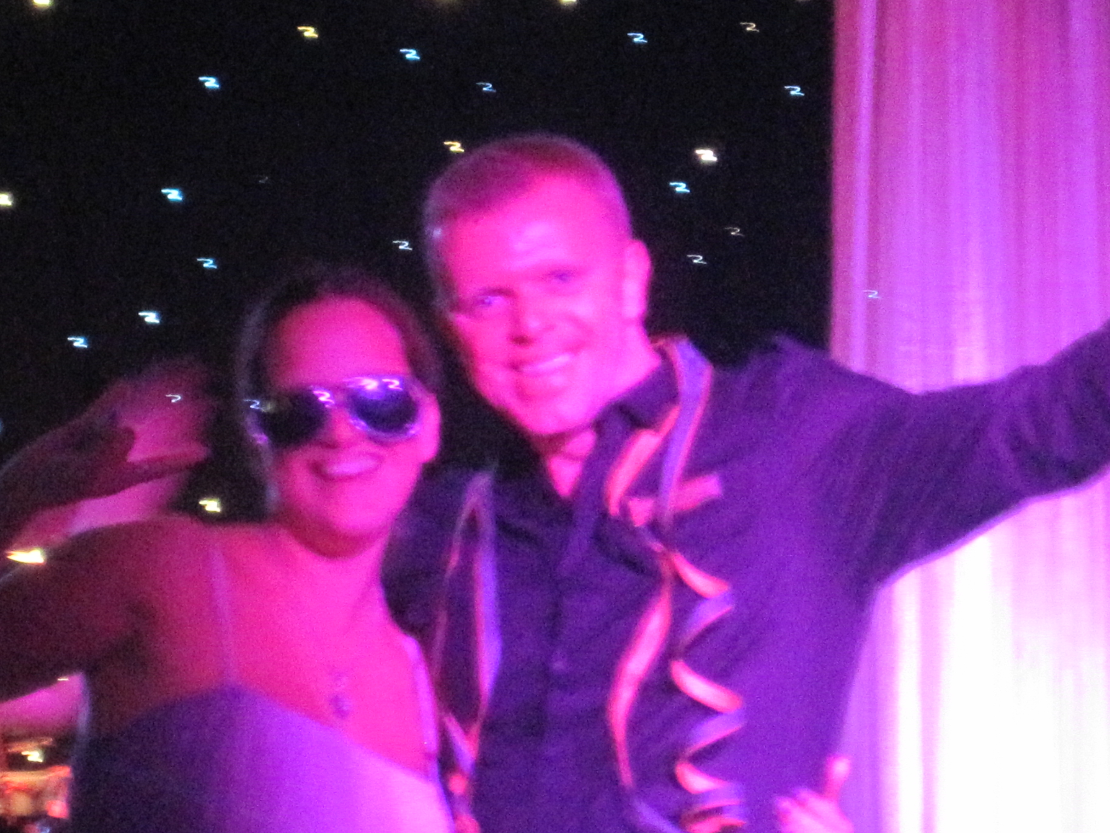 At dinner, there were balloons on the table and Tony had found some on his door in the morning too. He also got a card from the Captain, as well as the one from us. Dinner was roast lamb, which was very nice. After dinner, we went to the show, which was songs from musicals. Again, there was a slideshow before it started, and again there were some dreadful spelling mistakes. It really is inexcusable.
