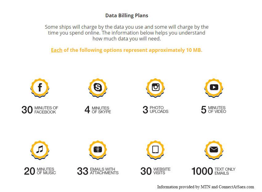 MTN (they who supply the ludicrously expensive satellite internet connection we have to use at sea) have created a graphic to help people calculate their usage, so that they can plan in advance and buy a bulk package if necessary to save money.